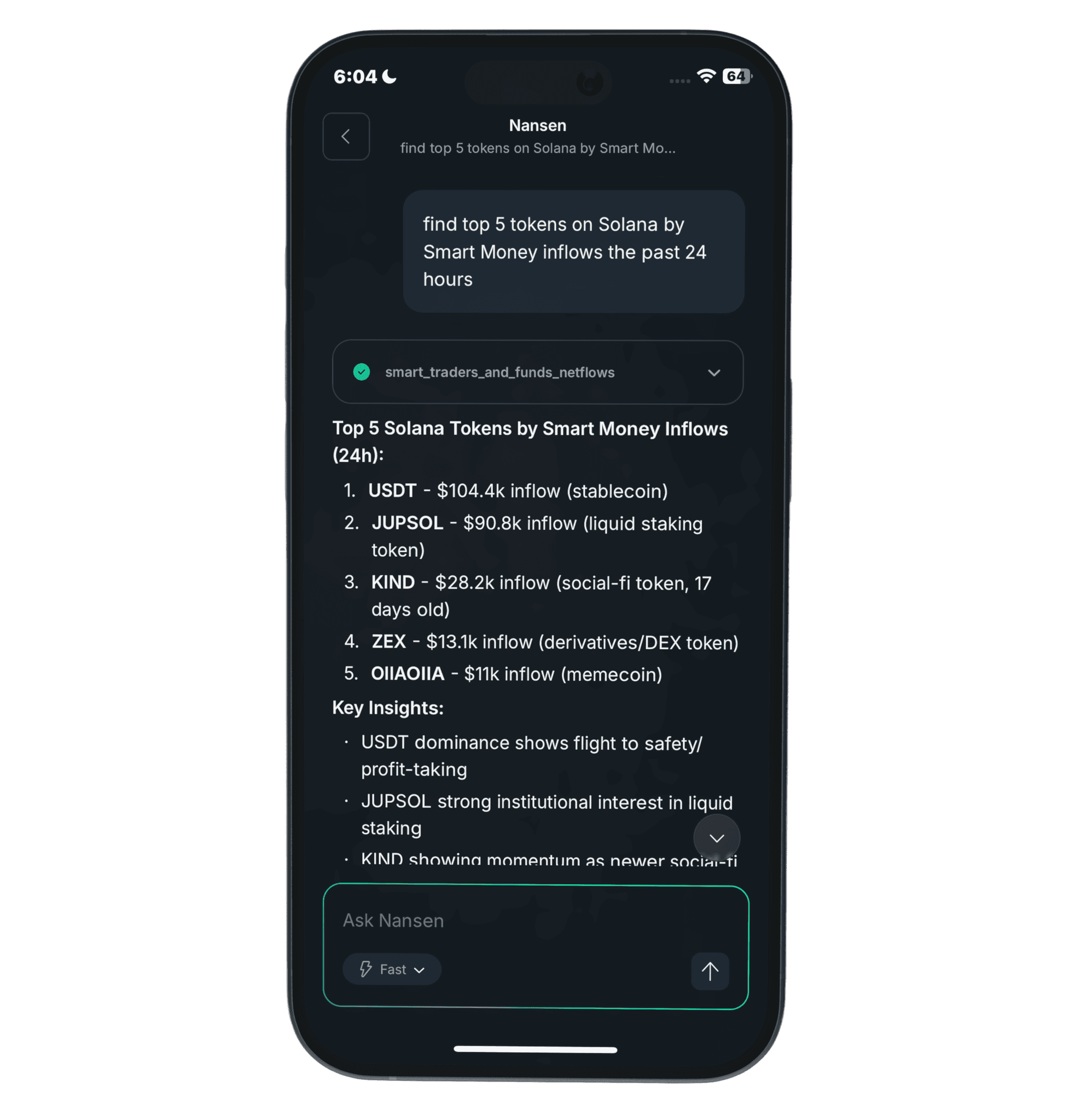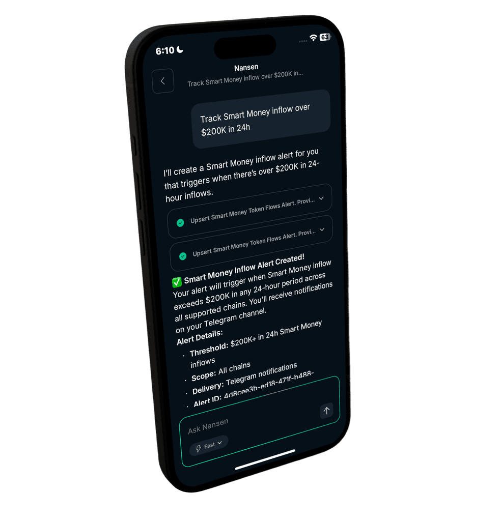 Instead of spending hours jumping between dashboards, just ask about anything onchain - smart money movements, token flows, or market trends - through our mobile app.